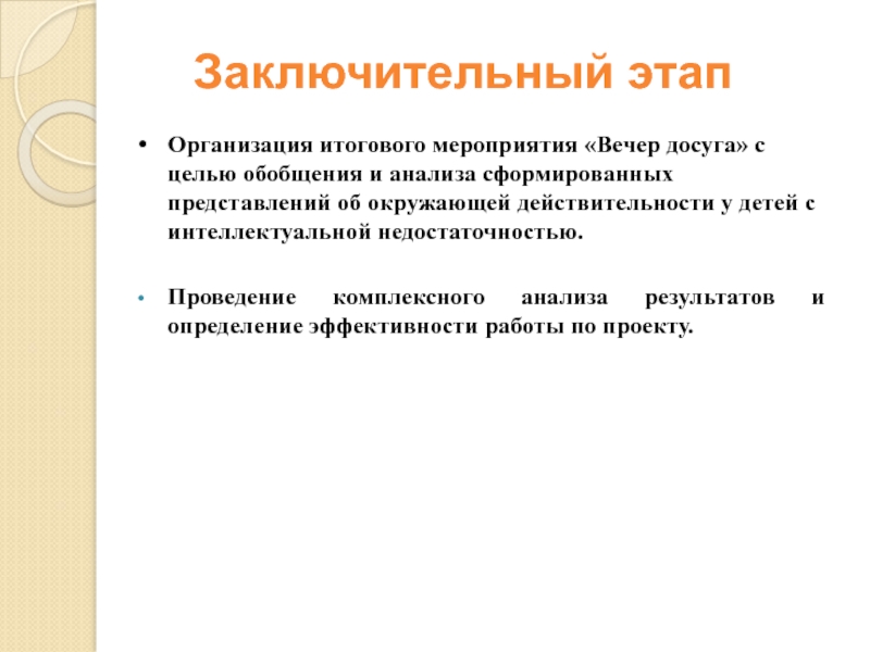 Организация итогового мероприятия «Вечер досуга» с целью обобщения и анализа
