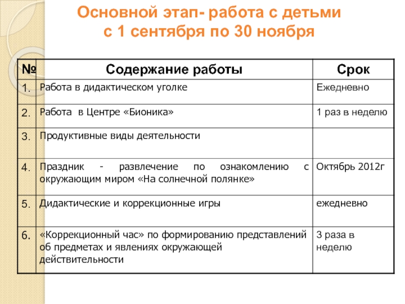 Реализовать комплекс мероприятий способствующих формированию представлений об окружающей действительности и процессу социализации детей с интеллектуальной недостаточностью;