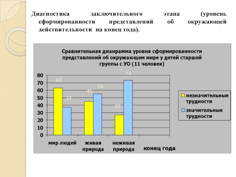 Слайд 16Диагностика заключительного этапа (уровень сформированности представлений об окружающей действительности на конец