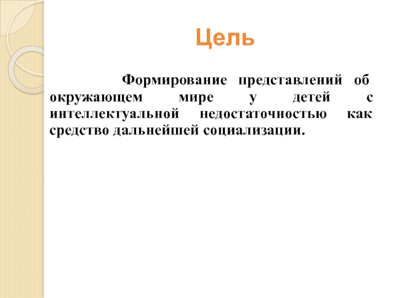 Сформировать необходимый уровень знаний, умений и навыков об окружающей действительности у детей с интеллектуальной недостаточностью;