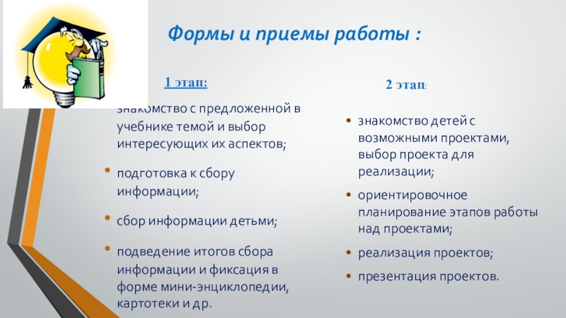 знакомство детей с возможными проектами, выбор проекта для реализации;