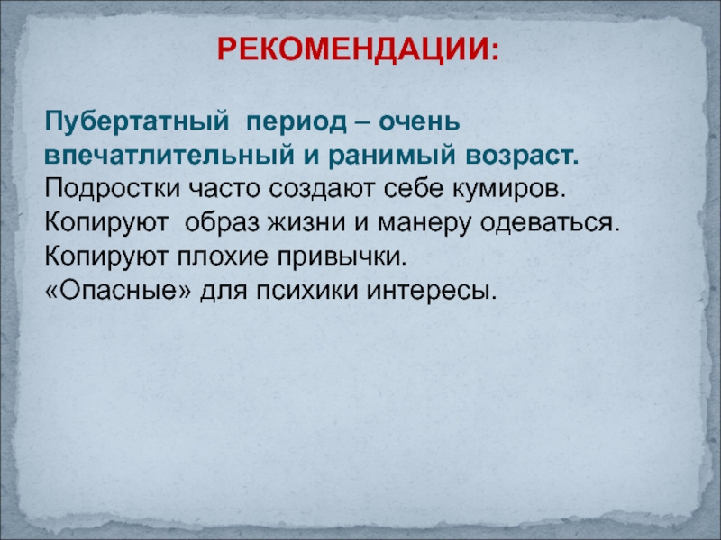 Пубертатный период – очень впечатлительный и ранимый возраст.