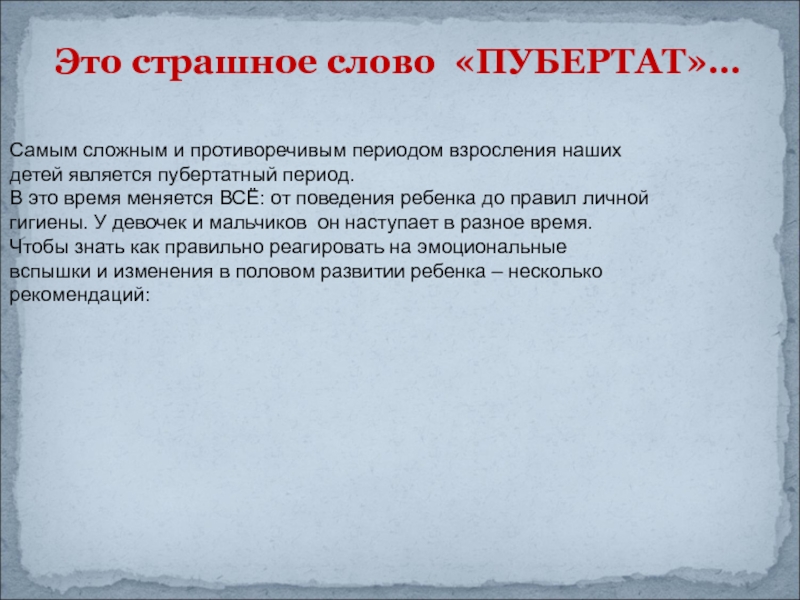 Слайд 15Это страшное слово «ПУБЕРТАТ»…
