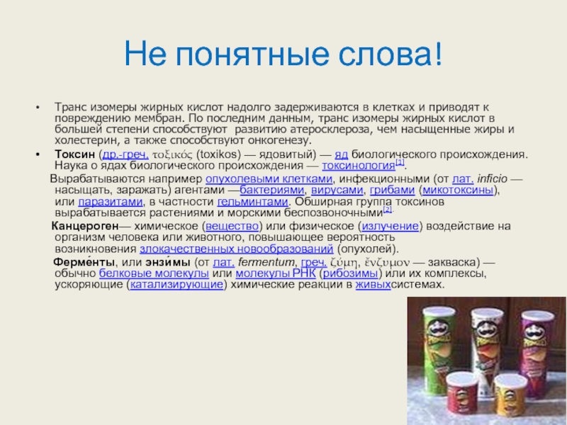 Транс изомеры жирных кислот надолго задерживаются в клетках и