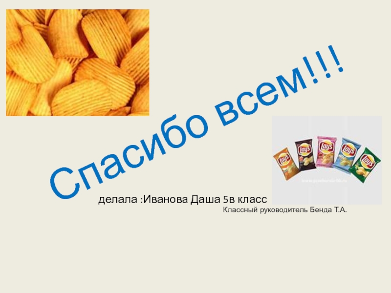 А вообще искренне желаем вам вспомнить, сколько по-настоящему вкусных, здоровых и полезных блюд есть в нашей, родной русской кухне, и тогда вы и ваши дети просто не будете знать, что такое чипсы. Разве это еда?