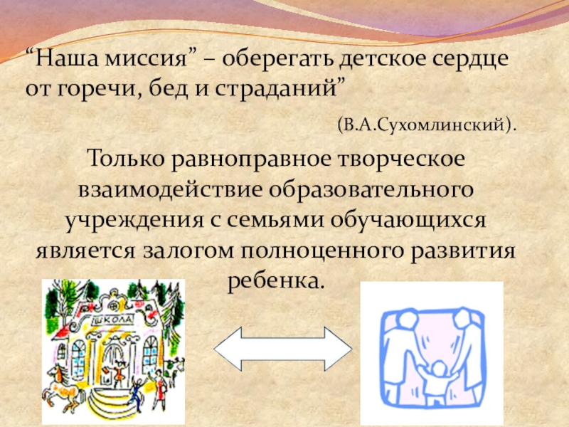 Только равноправное творческое взаимодействие образовательного учреждения с семьями обучающихся является залогом полноценного развития ребенка.