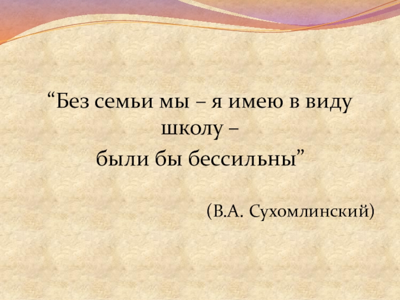 Слайд 5“Без семьи мы – я имею в виду школу –