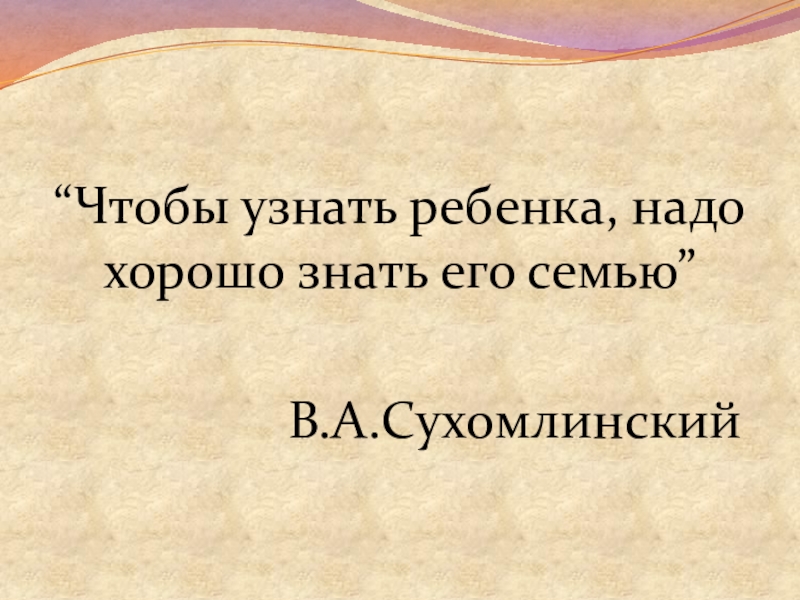 Слайд 2“Чтобы узнать ребенка, надо хорошо знать его семью”