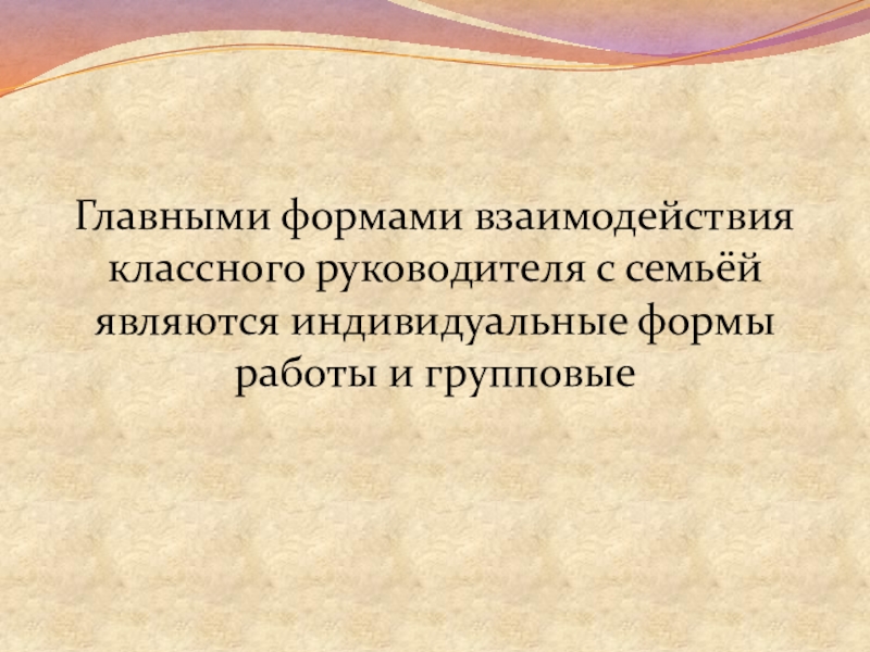 Слайд 15Главными формами взаимодействия классного руководителя с семьёй являются индивидуальные формы работы