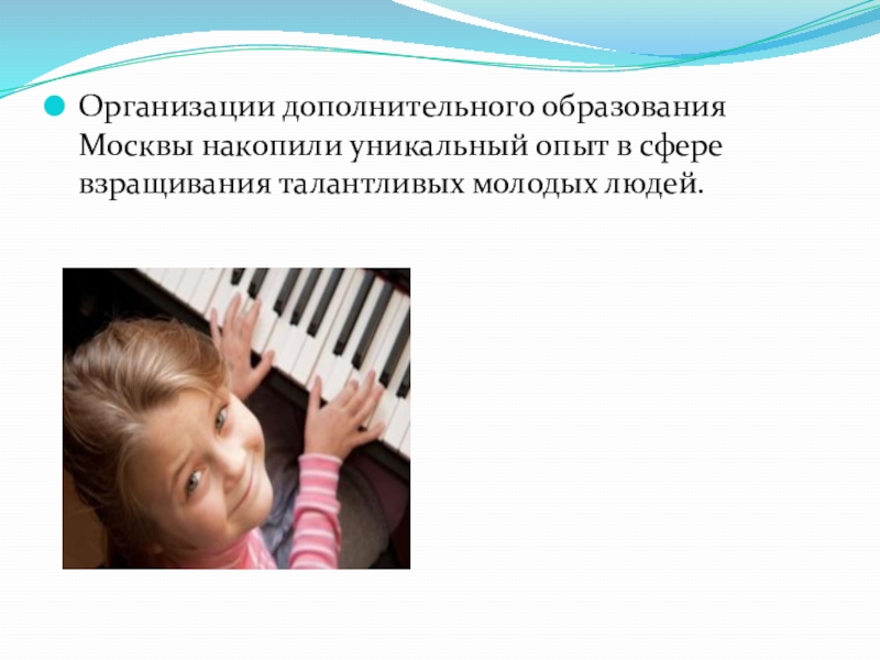 Слайд 14Организации дополнительного образования Москвы накопили уникальный опыт в сфере взращивания талантливых