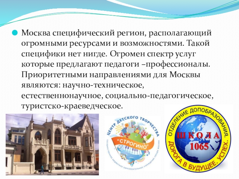 нигде. Огромен спектр услуг которые предлагают педагоги –профессионалы. Приоритетными направлениями для Москвы являются: научно-техническое, естественнонаучное, социально-педагогическое, туристско-краеведческое.