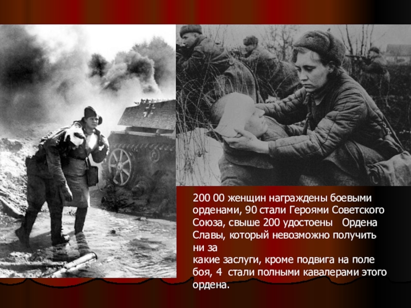 Слайд 17200 00 женщин награждены боевыми орденами, 90 стали Героями Советского