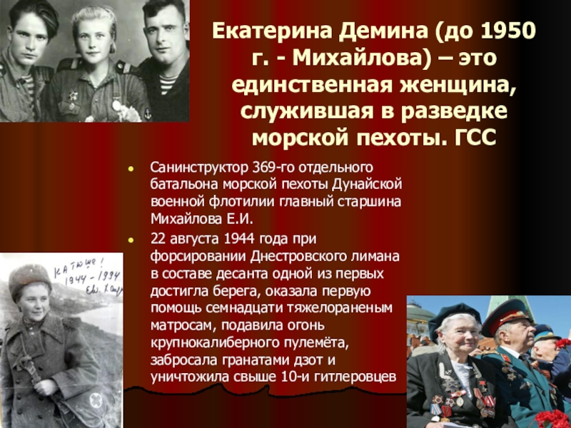 Слайд 18Екатерина Демина (до 1950 г. - Михайлова) – это единственная женщина,