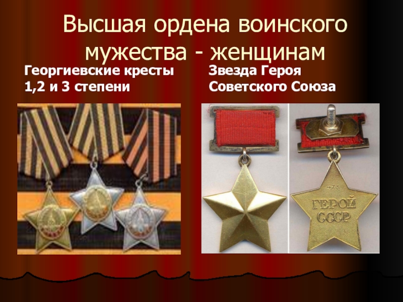 Слайд 9Высшая ордена воинского мужества - женщинам