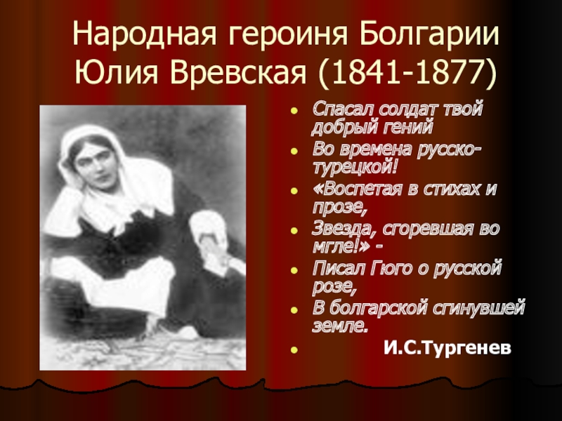 Слайд 7Народная героиня Болгарии Юлия Вревская (1841-1877)