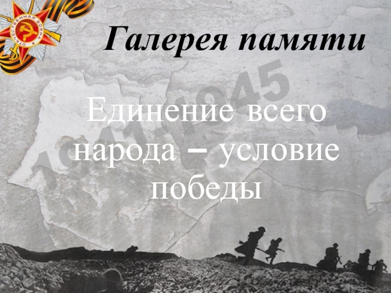 Презентация, доклад на тему Галерея памяти. Единение всего народа – условие победы.