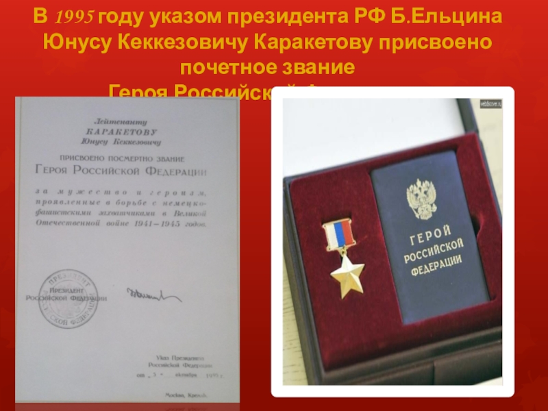 Мой земляк-участник Великой Отечественной войны, Герои Российской Федерации. ЮНУС КЁККЕЗОВИЧ КАРАКЕТОВ»