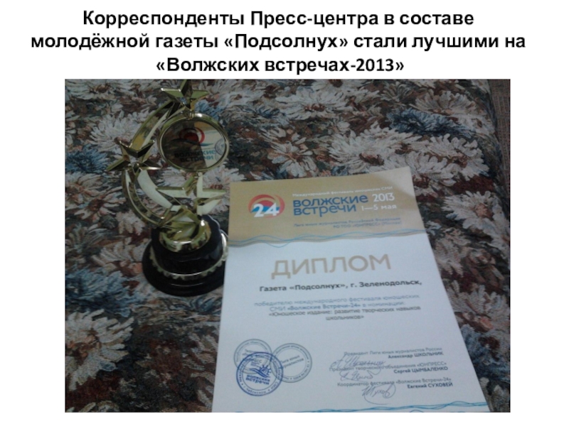 Слайд 32Корреспонденты Пресс-центра в составе молодёжной газеты «Подсолнух» стали лучшими на