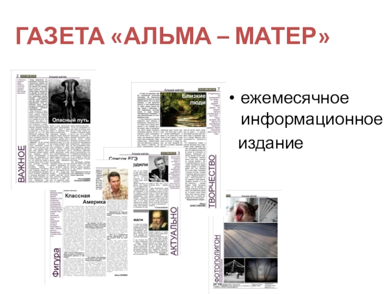 Слайд 28ГАЗЕТА «АЛЬМА – МАТЕР»