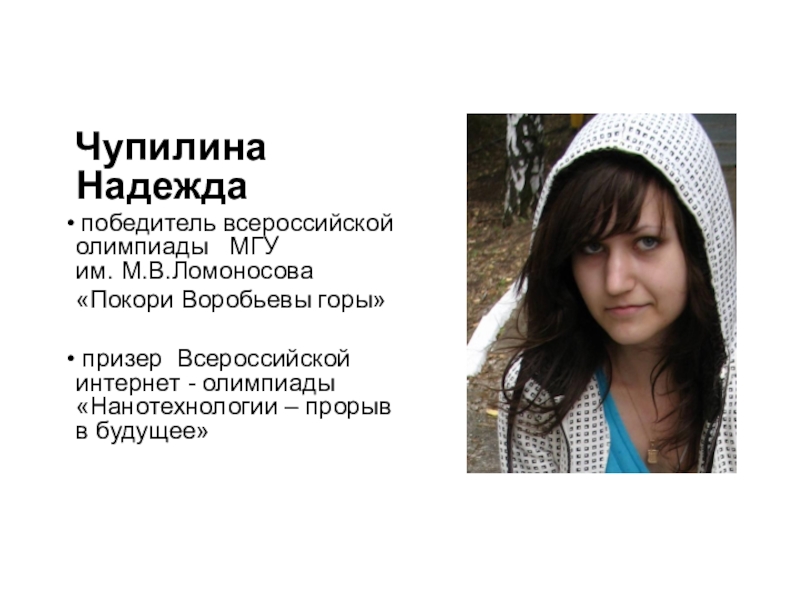призер Всероссийской интернет - олимпиады «Нанотехнологии – прорыв в будущее»
