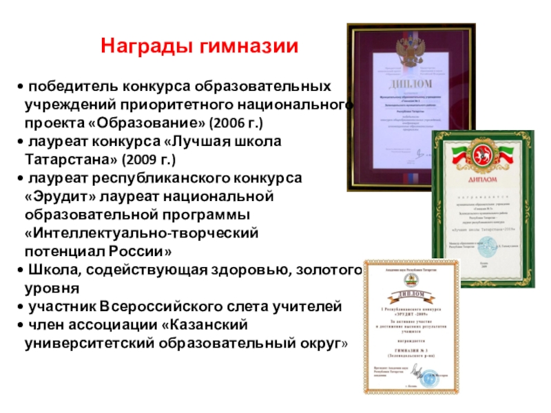 лауреат конкурса «Лучшая школа Татарстана» (2009 г.)