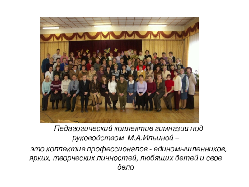 Слайд 14 Педагогический коллектив гимназии под руководством М.А.Ильиной –