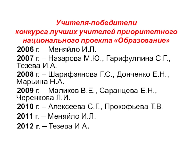 конкурса лучших учителей приоритетного национального проекта «Образование»