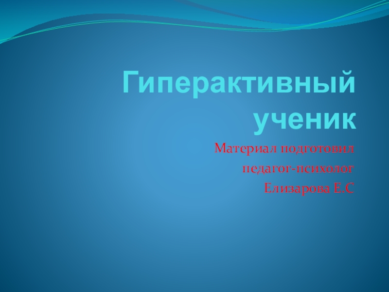 Гиперактивный ученикМатериал подготовил педагог-психологЕлизарова Е.С