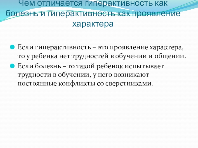 Слайд 6Чем отличается гиперактивность как болезнь и гиперактивность как проявление характера