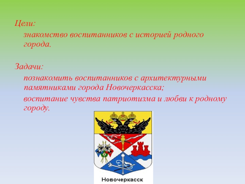 воспитанников с архитектурными памятниками города Новочеркасска;