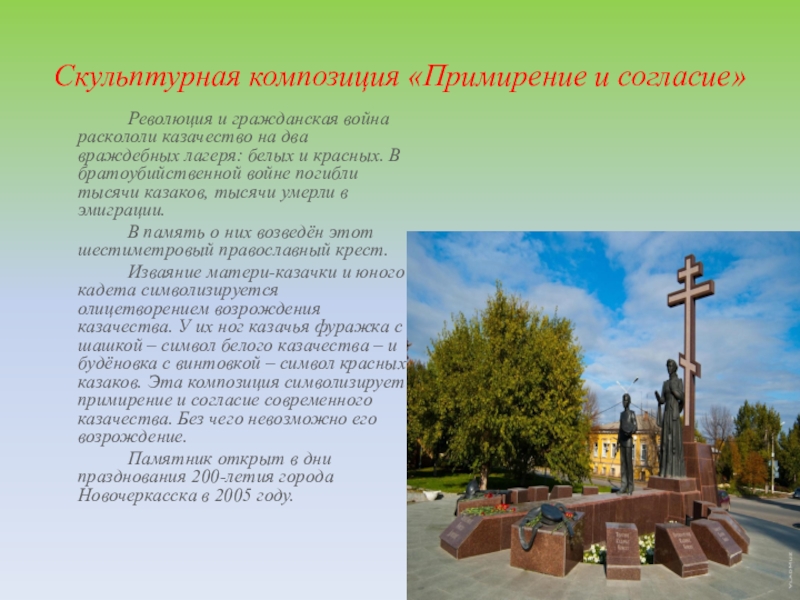 Слайд 6Скульптурная композиция «Примирение и согласие»