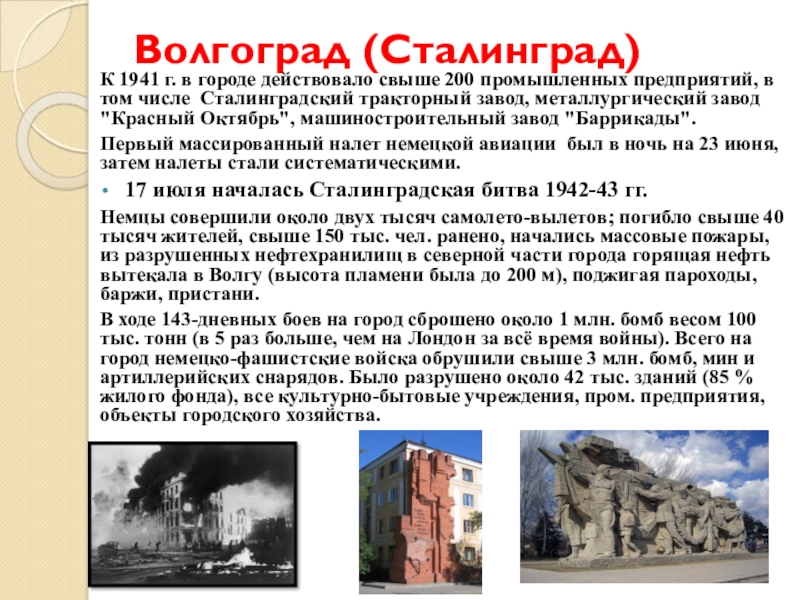 в том числе Сталинградский тракторный завод, металлургический завод "Красный Октябрь", машиностроительный завод "Баррикады".