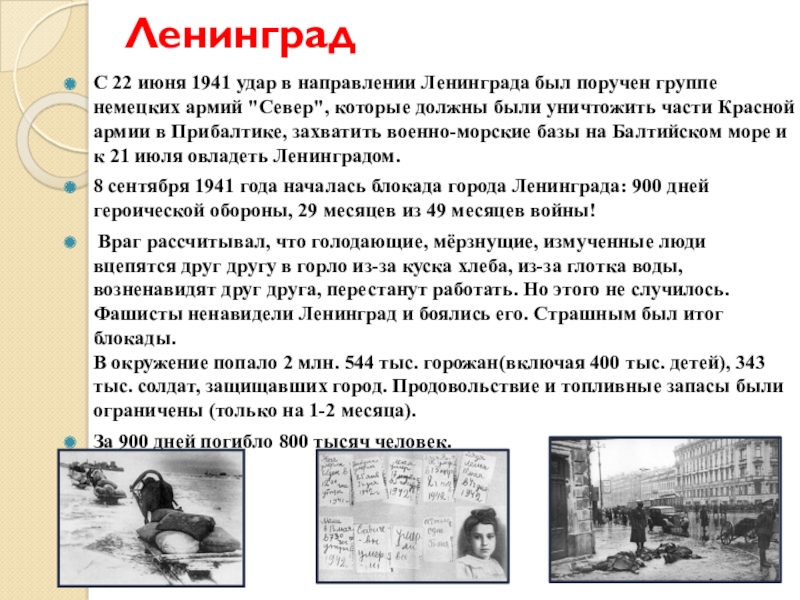 Враг рассчитывал, что голодающие, мёрзнущие, измученные люди вцепятся друг другу в горло из-за куска хлеба, из-за глотка воды, возненавидят друг друга, перестанут работать. Но этого не случилось. Фашисты ненавидели Ленинград и боялись его. Страшным был итог блокады.