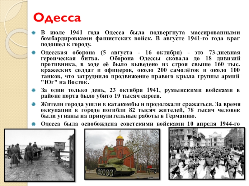 В июле 1941 года Одесса была подвергнута массированными бомбардировками фашистских войск.