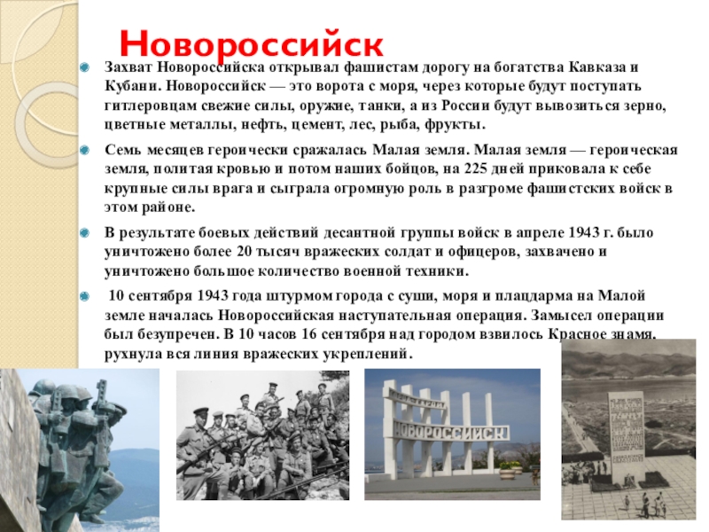 Захват Новороссийска открывал фашистам дорогу на богатства Кавказа и Кубани. Новороссийск