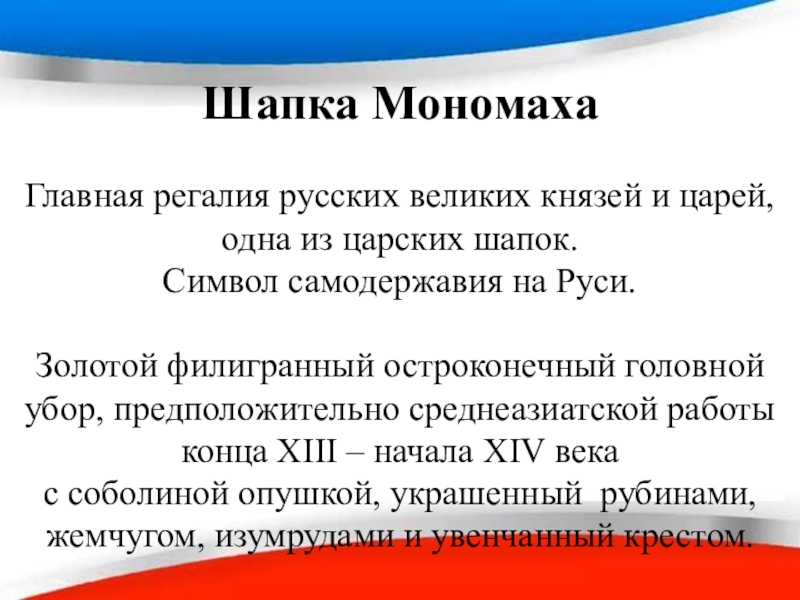 Главная регалия русских великих князей и царей, одна из царских шапок.