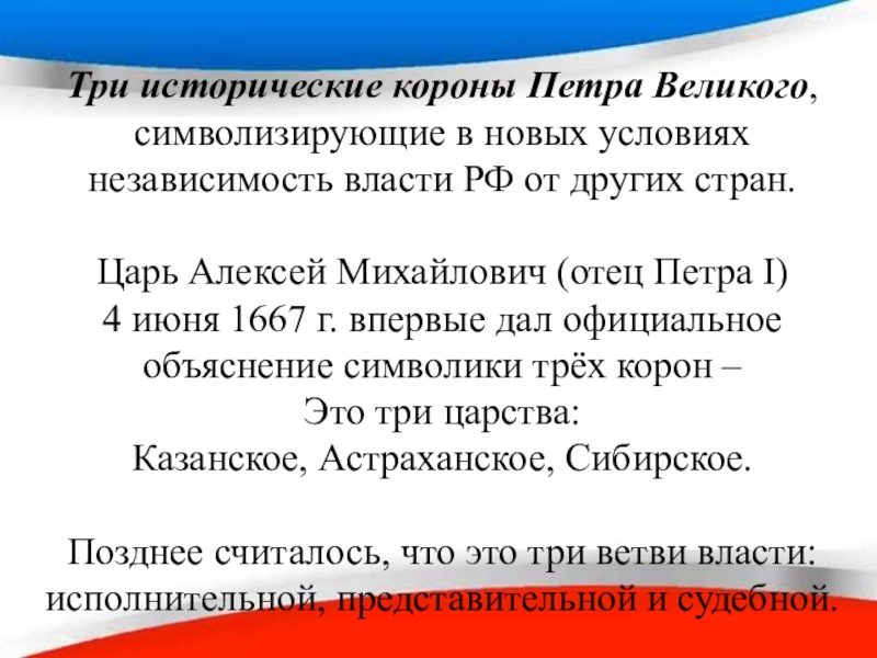 Слайд 12Три исторические короны Петра Великого,