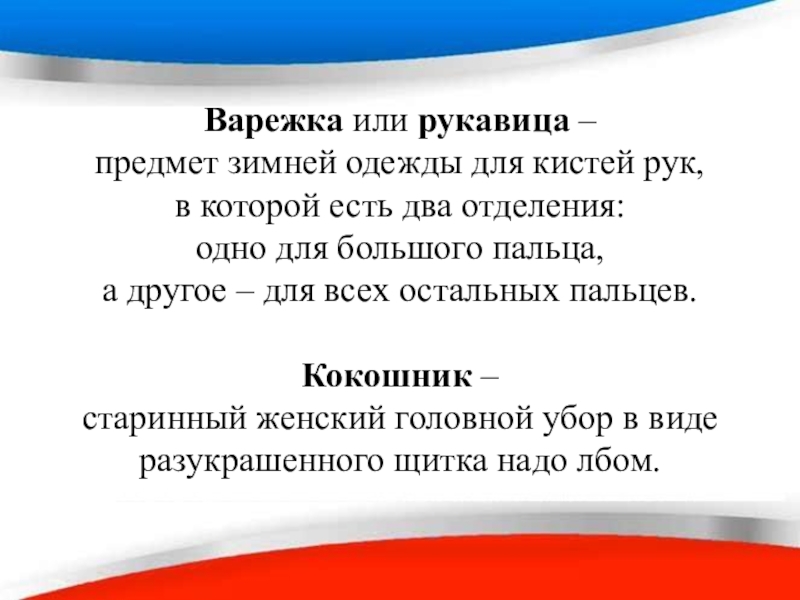 Слайд 46Варежка или рукавица –
