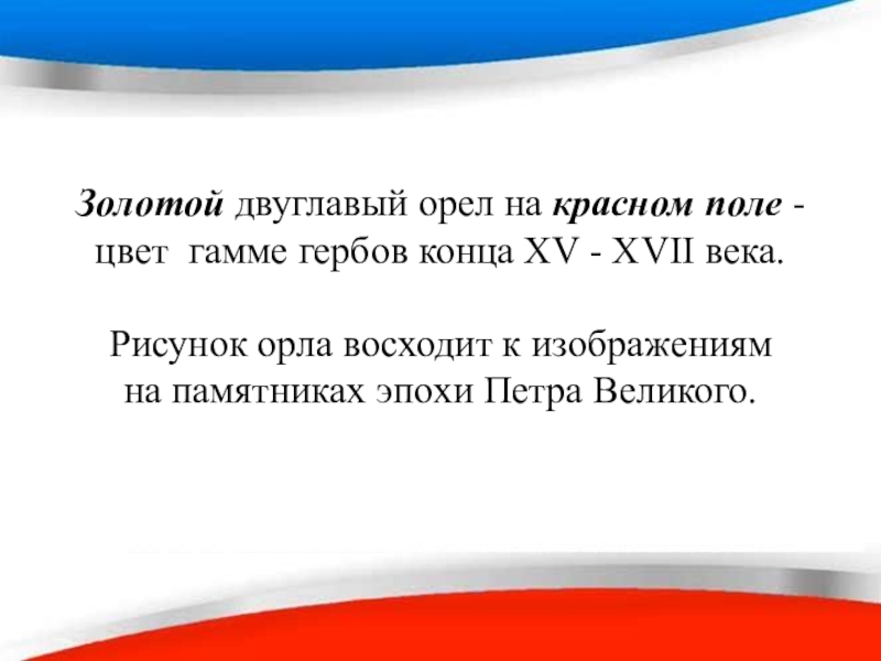 Слайд 11Золотой двуглавый орел на красном поле -
