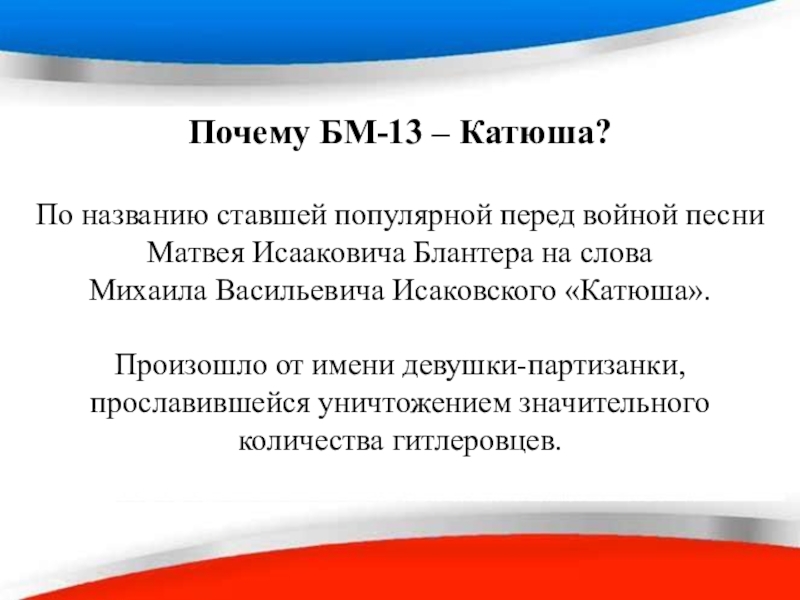 Слайд 40Почему БМ-13 – Катюша?