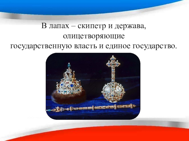 Слайд 13В лапах – скипетр и держава,