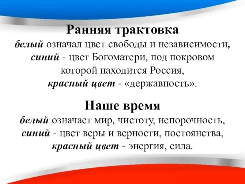 белый означал цвет свободы и независимости,