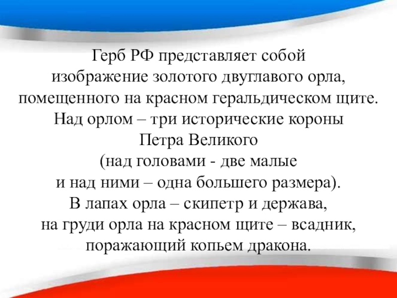 Слайд 10Герб РФ представляет собой