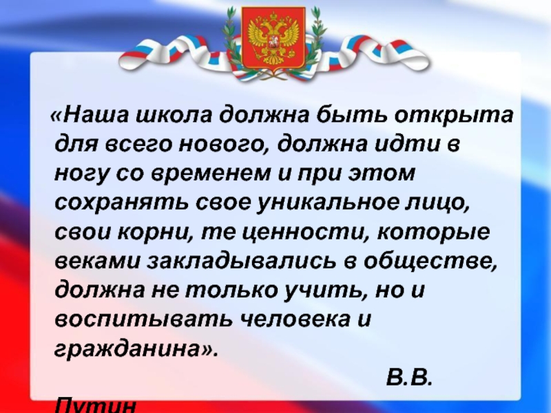 Слайд 3 «Наша школа должна быть открыта для всего нового, должна