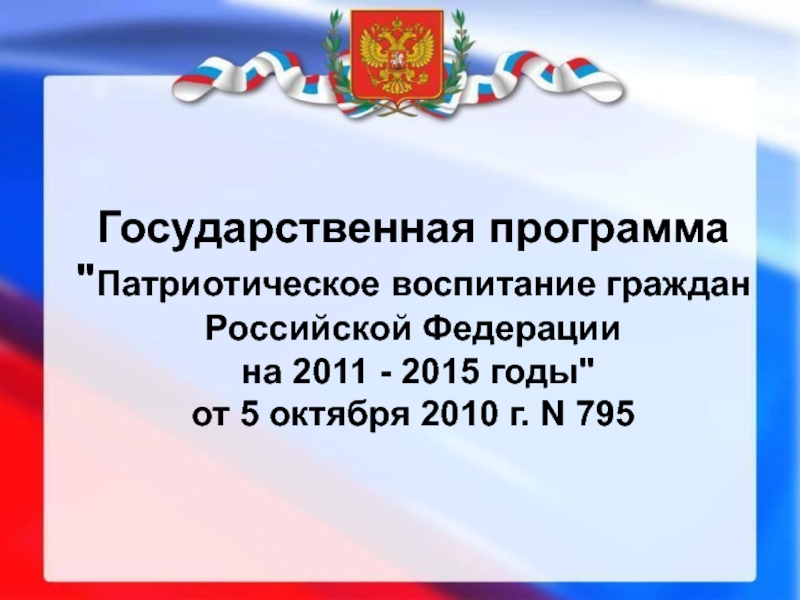 Слайд 10Государственная программа "Патриотическое воспитание граждан Российской Федерации