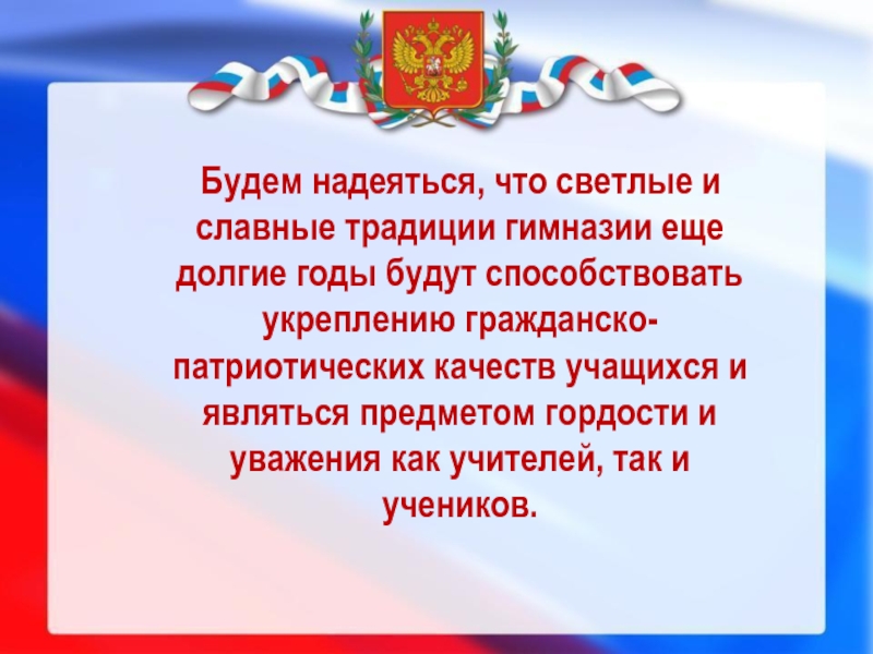 Слайд 38 Будем надеяться, что светлые и славные традиции гимназии еще