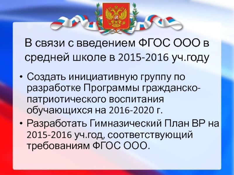 Слайд 1 Гражданско –патриотическое воспитание учащихся как основное требование ФГОС ООО»