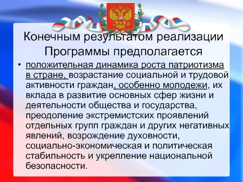 дальнейшее развитие и совершенствование системы патриотического воспитания граждан.