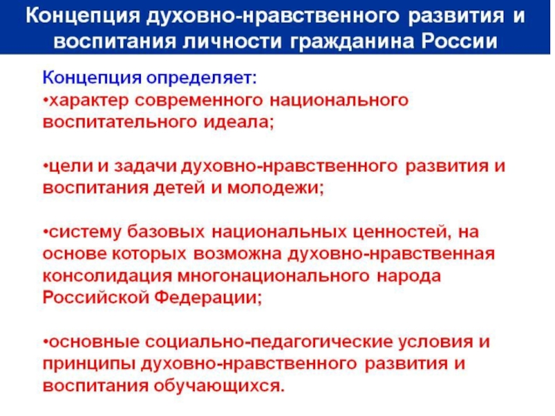 Российской Федерации, обеспечивающей формирование российской гражданской идентичности, консолидацию общества, укрепление моральных основ общественной жизни, успешную социализацию детей, свободное духовно-нравственное развитие каждого гражданина, его самоопределение в мире нравственных ценностей, духовных и культурных традиций многонационального народа Российской Федерации, межкультурного понимания и уважения, осознания своей человеческой общности, ответственности за сохранение мира на Земле, совершенствование мира вокруг себя.
