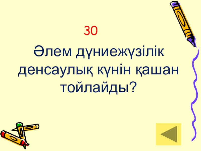 30Әлем дүниежүзілік денсаулық күнін қашан тойлайды?